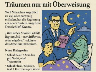 Weil Menschen angeblich zu viel oder zu wenig schlafen, hat die Regierung ein neues System eingeführt: Das Schlaf-Konto.Jede Stunde Schlaf wird erfasst, kontrolliert und notfalls […]