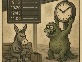 Offiziell heißt es: „Der Bahnverkehr läuft stabil, kleinere Verzögerungen im Betriebsablauf.“Inoffiziell wissen alle: Der Fahrplan ist längst ein Fantasy-Roman mit Happy End auf Seite 300.