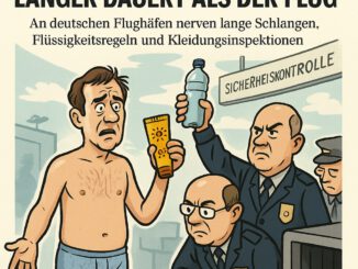 An deutschen Flughäfen dauert die Kontrolle länger als der Flug. Gürtel, Laptop, Sonnencreme – Sicherheit als Ritual.