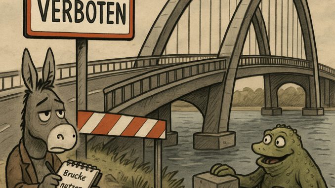 Die Politiker schneiden Bänder durch, die Presse jubelt – und Kassandra ruft vom Turm: „Eine Brücke ohne Schritt ist nur ein schöner Bogen über leeres Wasser.“
