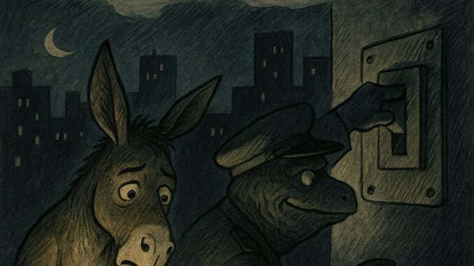 Im Sanatorium notiert der Esel trocken: „Wenn die Lampen flackern, lügt entweder der Strom oder die Erklärung.“