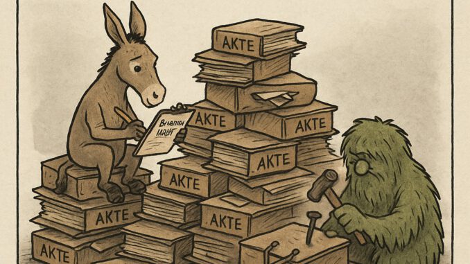 • 📁 Ein Insider behauptet, einige Aktenordner enthalten nur weiße Blätter – aber mit „streng vertraulich“-Stempel.