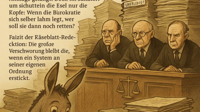 Die Justiz ächzt, der Deutsche Richterbund fordert „massive Investitionen“ – doch im Sanatorium schütteln die Esel nur die Köpfe: Wenn die Bürokratie sich selber lahm legt, wer soll sie dann noch retten?
