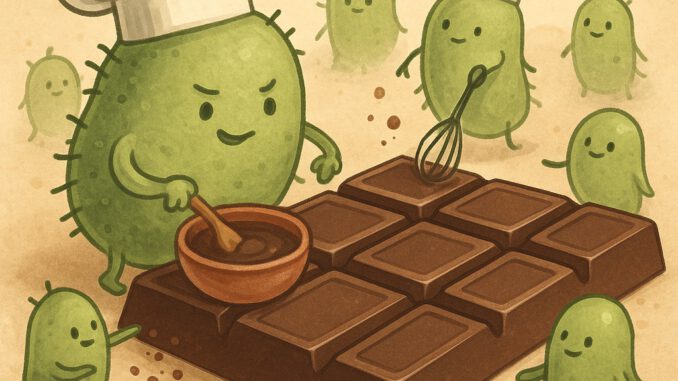 Forschende behaupten: Mikroben könnten die Lösung für gleichbleibend gute Schokolade sein. Im Kaufhaus A. sorgt das für neue Perspektiven – und ein leichtes Zucken im Hygiene-Amt.