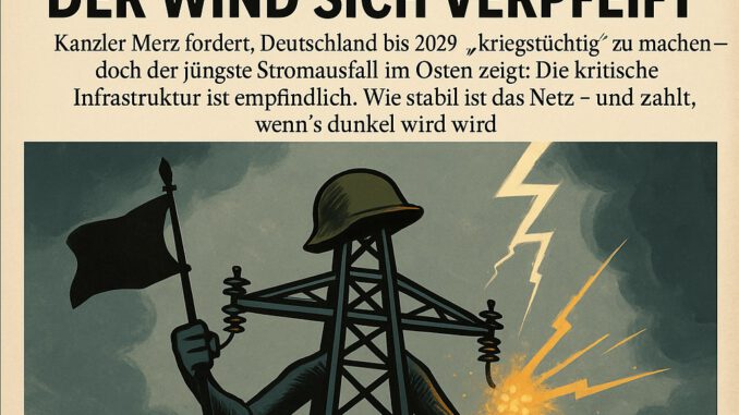 Kanzler Merz fordert, Deutschland bis 2029 „kriegstüchtig“ zu machen – doch der jüngste Stromausfall im Osten zeigt: Die kritische Infrastruktur ist empfindlich. Wie stabil ist das Netz – und wer zahlt, wenn’s dunkel wird?