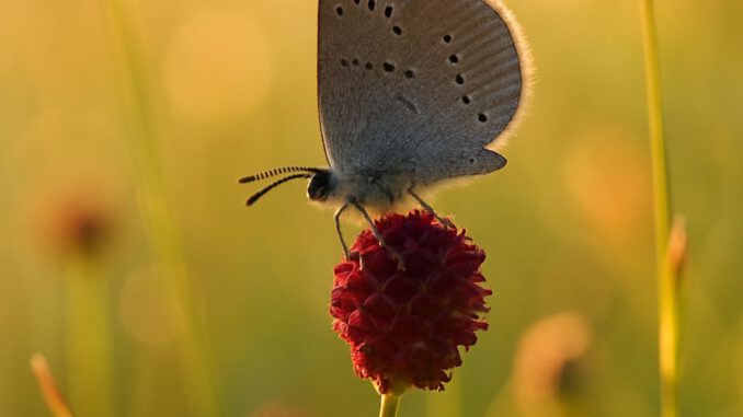 Der Dunkle Wiesenknopf-Ameisenbläuling (Phengaris nausithous) legt seine Eier ausschließlich auf den Großen Wiesenknopf. Die Raupen ernähren sich zunächst von der Pflanze – bis Ameisen sie „adoptieren“.