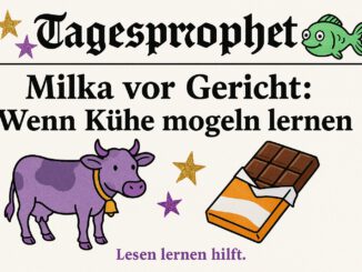 – Milka verklagt: Mogelpackung oder Mathematikproblem?– Verbraucherschützer: „Wir wollten nur 15 Gramm mehr Liebe.“– Sanatorium urteilt: Lesen lernen hilft.