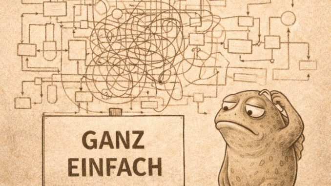 Jemand hat daneben ein großes Schild gestellt: „GANZ EINFACH.“