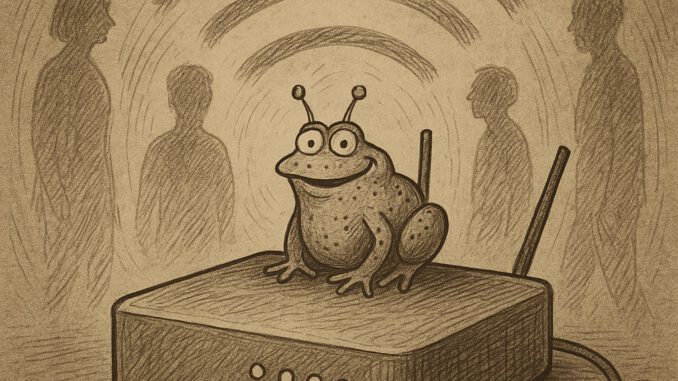 Er sitzt im Router, blinzelt durch das Signal und gluckst: „Ihr wolltet Verbindung – jetzt habt ihr sie.