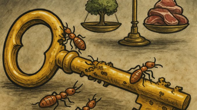 – Und mitten im Getöse schleicht der Termiteneffekt: Strukturen, die langsam von innen zerfressen werden, bis die Stabilität nur noch Kulisse ist.