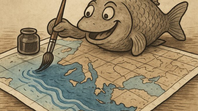 Der Fisch gluckst: „Ich male mir ein Meer dazu.“