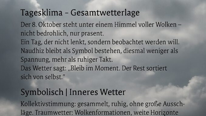 Der 8. Oktober steht unter einem Himmel voller Wolken â nicht bedrohlich, nur prĂ€sent.